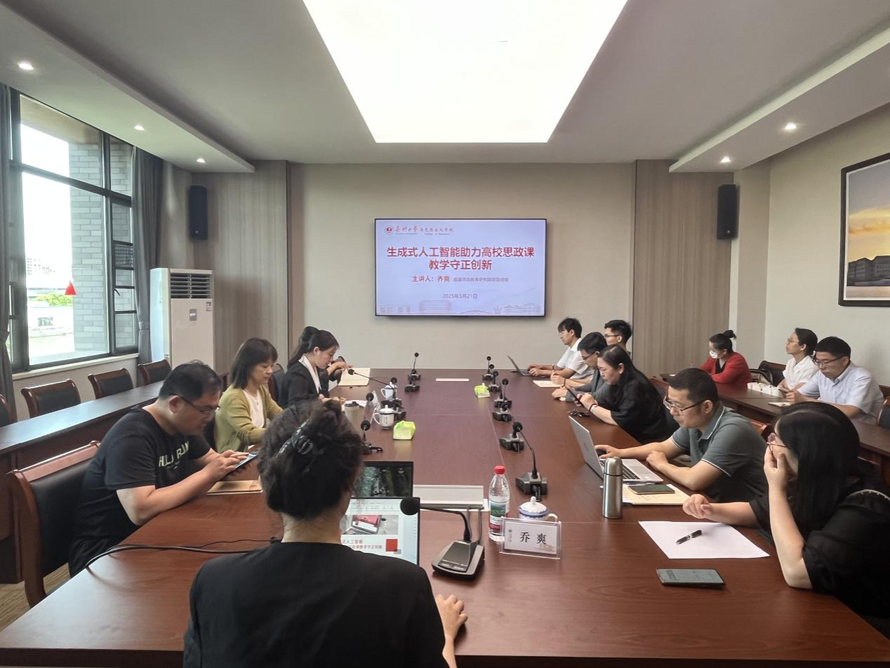 为深入贯彻全国教育工作会议精神和习近平总书记关于思政课教学的重要论述,进一步推进思政课课堂教学创新与改革,结合公司“提质量、强一流”本科教学质量月相关教学活动安排,永利65335com于5月21日下午举办了“AI赋能思政课”教学活动。本次教研活动邀请了超星思政教育研究院乔爽经理作题为《生成式人工智能助力高校思政课教学守正创新》的讲座。公司党总支书记宋之霞、副经理罗理章,以及公司部分教师参加了讲座。讲座由副经理张笑笑主持。