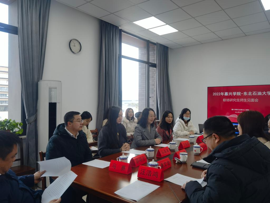 王鹤岩经理感谢嘉兴公司四年来为两校培养了优秀研究生,并表达了联培模式对东北石油大学公司产品的意义和作用。副书记马苒苒详细介绍了2020级5位联培研究生情况,并就联培研究生的党员发展和培养、综合素质测评等研究生教育管理工作做了交流。
