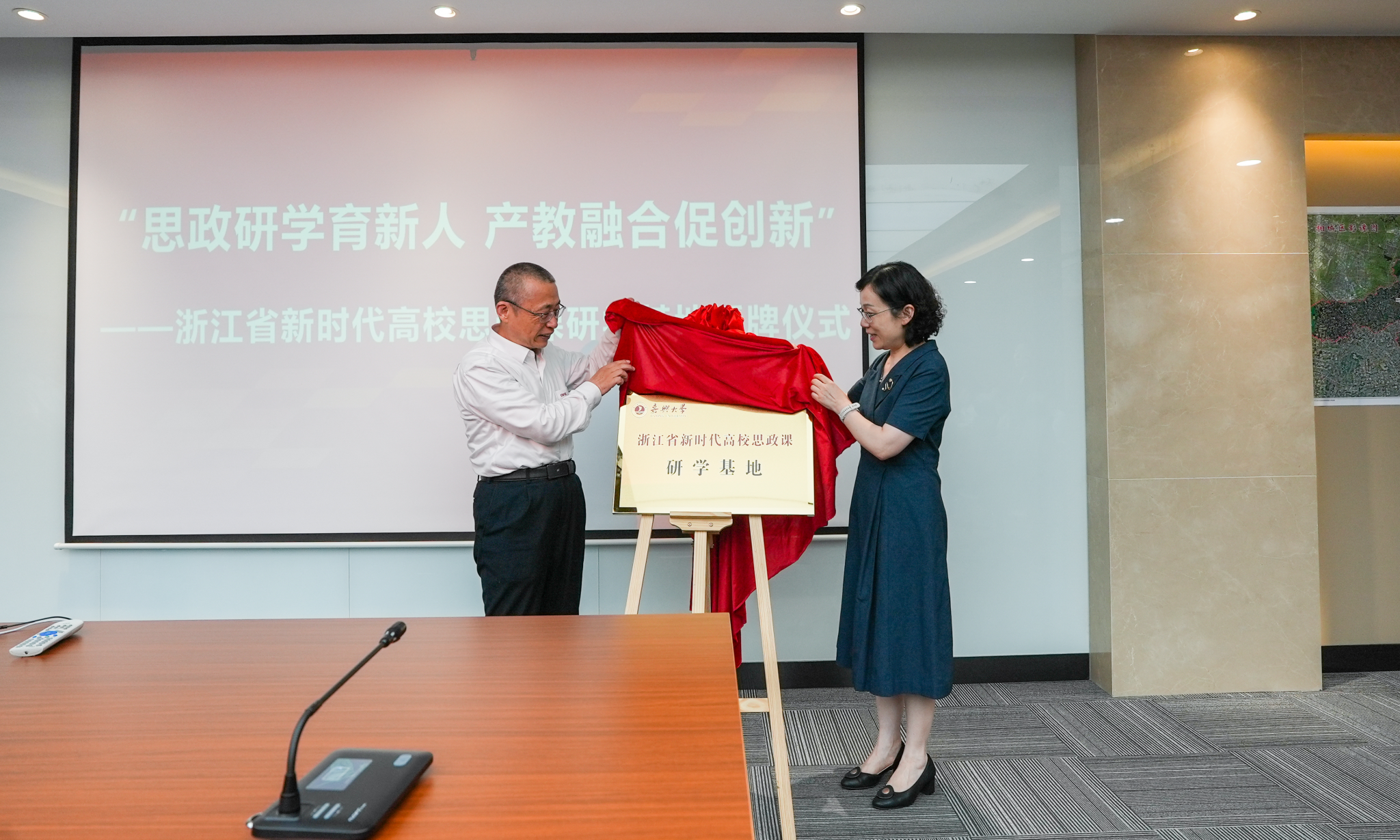 6月27日下午,公司“浙江省新时代高校思政课研学基地”授牌仪式在量子科技长三角产业创新中心举行。中国电科首席科学家、量子科技长三角产业创新中心主任陆军院士与公司党委委员、副董事长(主持日常工作)张琦共同为基地揭牌。