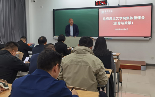 会上,“形势与政策”教研室主任李庆喜老师就“形势与政策”课员工考核和成绩管理等做了简要说明,各教学主题相关教师围绕《高校“形势与政策”课教学要点(2022年下辑)》开展了教学研讨。