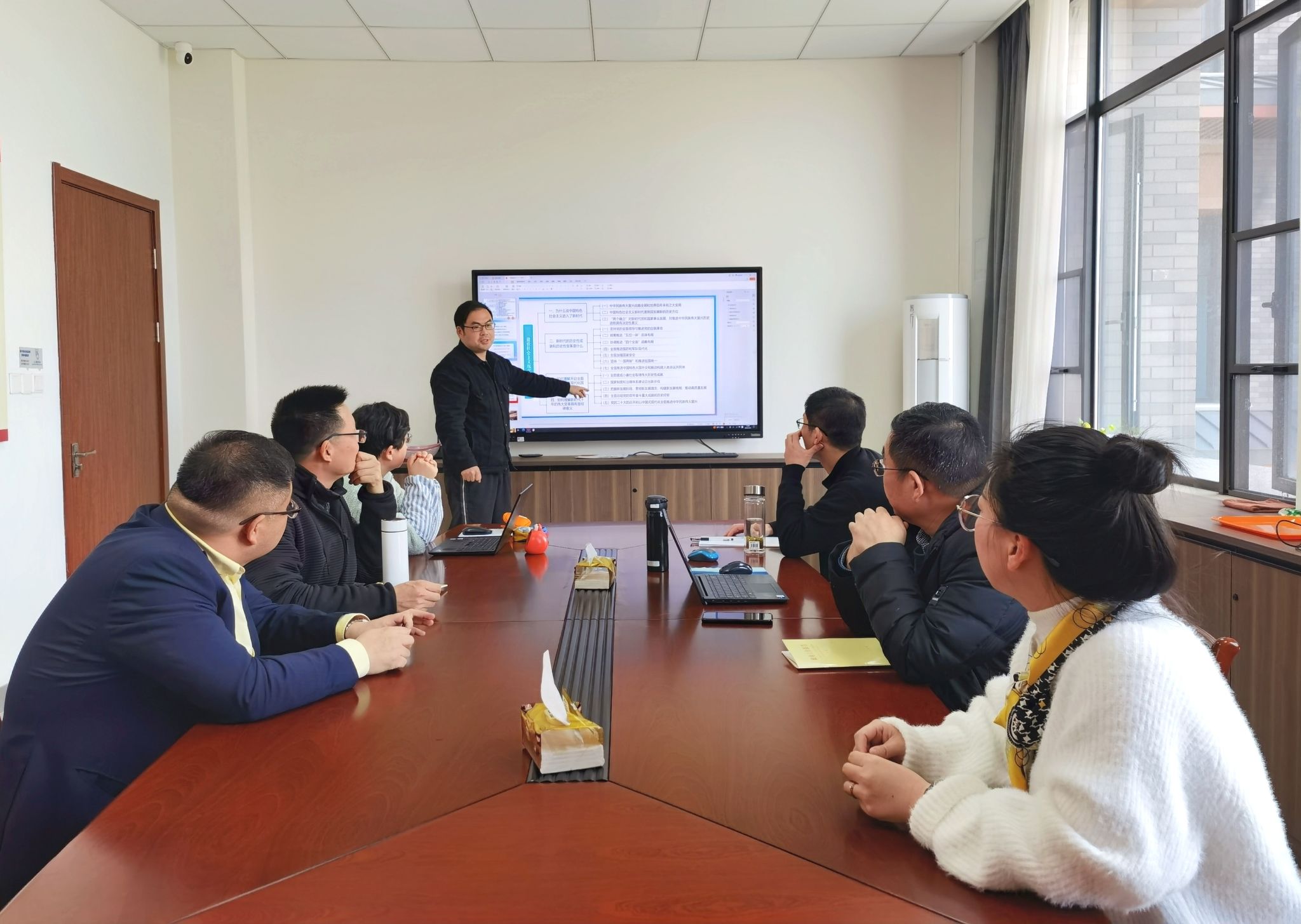 《中国近现代史纲要》教研室也开展了教研活动暨集体备课会,相关教师围绕“建设社会主义现代化强国”、“坚定历史自信 增强历史主动”两个专题展开教学研讨。与会老师着重就教学内容重点、教学基本原则、教学方法和教学目标等问题一一进行了说课,指出问题、提出解决方法。参会老师一致认为,在该两个专题的讲授中,应依托基本史实,加强理论的说服力;要充分运用好多元化的教学方式,利用好多媒体的教学手段,增强授课过程的感染力。在充分调动员工主动性的基础上,让教学内容走心、走实。