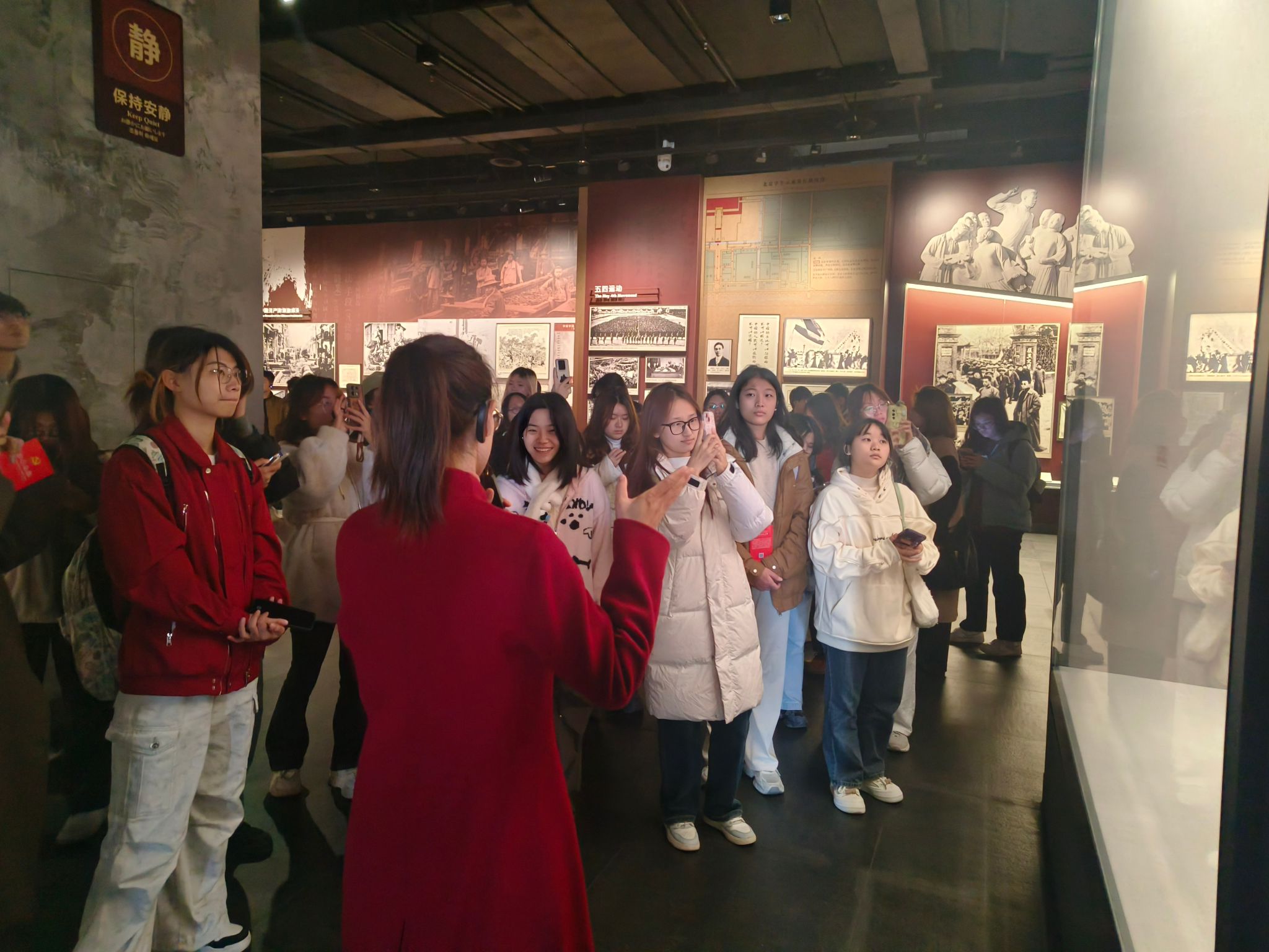 同学们在南湖革命纪念馆讲解员的带领下,参观学习了纪念馆展陈的“开天辟地”单元,包括“探索救亡图存的道路”“中国共产党成立”和“十三位代表生平事迹介绍”三个部分;以及“光辉历程”单元,包括“进行新民主主义革命”“建设社会主义新中国”“走中国特色社会主义道路”三个部分。参观过程中,同学们细心聆听中国共产党从成立之初领导中国人民站起来到富起来,再到现在强起来的伟大历程,充分感受到了中国共产党矢志不渝为中国人民谋幸福,为中华民族谋复兴的初心和使命。