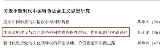 近日,公司彭冰冰教授在权威期刊《马克思主义研究》发表了题为《生态文明建设与共同富裕协同推进的内在逻辑、作用机制与实践路径》的学术论文。