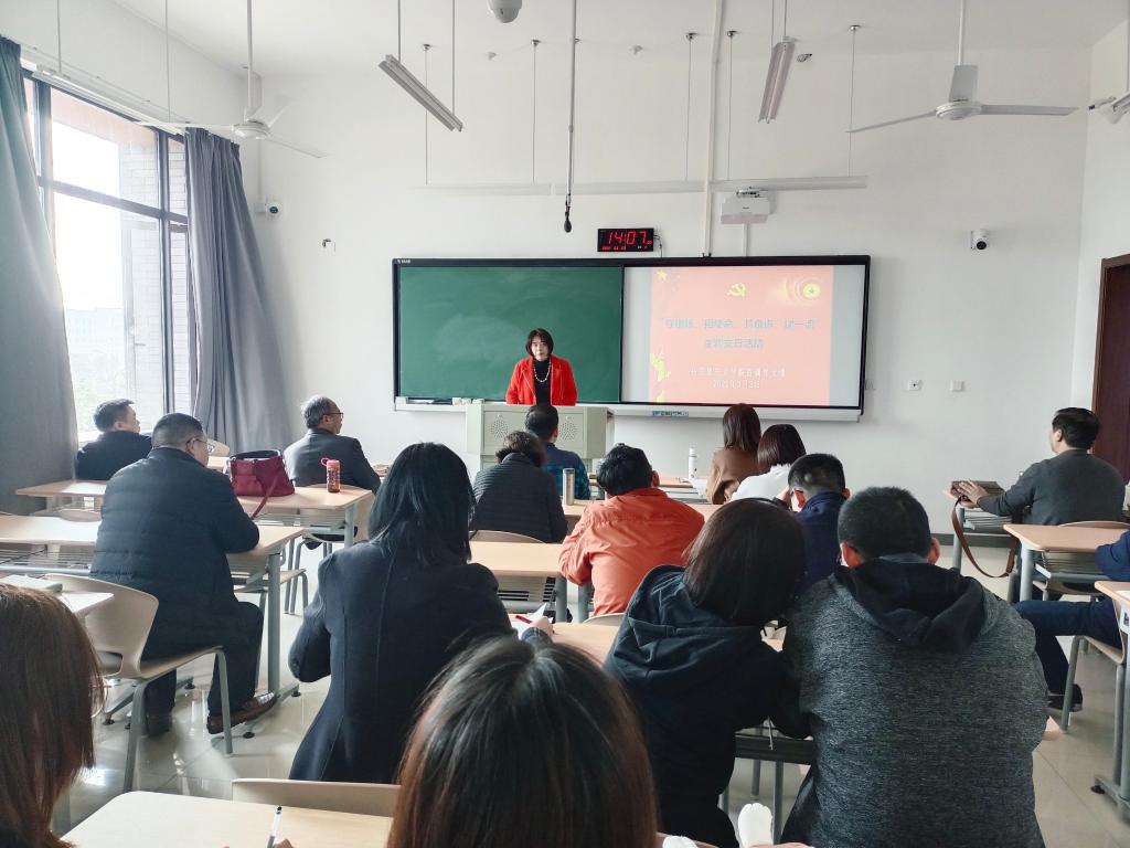 张玉茹老师作为嘉兴市党代表宣讲了嘉兴市第九次党代会报告,同时分享了自己参会的感受和体会。张玉茹表示五年来嘉禾大地发生的“蝶变跃升”,让大家切身感受到了作为嘉兴人的自豪和幸福。在未来五年中作为一名高校教师将以“立德树人”为根本,为嘉兴市建设成为共同富裕典范城市和社会主义现代化先行市做出自身贡献。宋之霞希望老师们要继续深入学习和贯彻好市第九次党代会精神,并将会议精神落实到实际行动中,加强校地合作,提升服务地方能力,切实为嘉兴市奋力实现“两个率先”,加快建设共同富裕典范城市和社会主义现代化先行市,努力成为“重要窗口”中最精彩板块而做出应有的贡献。