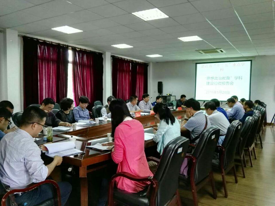 2016528,本部在公司文苑宾馆召开了“十二五”省级重点学科“思想政治教育”团队建设情况验收报告会。会议由我部副主任彭冰冰博士主持,思政部教师、红船中心研究人员列席会议并听取了同行专家们的验收评议。