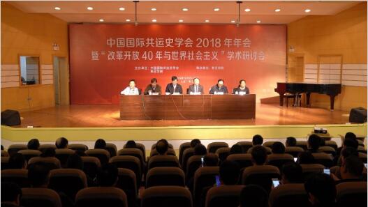 曹胜强、季正聚先后在开幕式上致辞。大会主题报告阶段,北京大学国际关系公司黄宗良教授和国家行政公司黄百炼教授分别做了题为《马克思主义与中国的改革开放事业》与《改革开放是当代中国发展进步的活力之源》的报告。大会主题发言阶段,中央党史和文献研究院王学东研究员梳理了国际共运史学科的发展历程,分析了国际共运史与世界社会主义的关系;中共中央党校科社部胡振良教授分析了改革开放与现代化的关系;中共中央对外联络部研究室参赞柴尚金总结了我国开放40年的成就,明晰了中国开放的阶段性特点与重要启示;中国人民大学国际关系公司蒲国良教授分享了社会主义国家改革的几点启示。